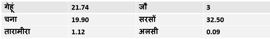 प्रदेश में इस वर्ष जौ की बुवाई लक्ष्य से 21 फीसदी पिछड़ी हुई नजर आ रही है। इससे कहा जा सकता है कि इस साल बारानी क्षेत्रों में चने की अच्छी बुवाई हुई है। गौरतलब है कि चने की बुवाई लक्ष्य से 93 फीसदी हो चुकी है। इस साल चना बुवाई के लिए सरकार ने साढे 21 लाख हैक्टयर का लक्ष्य रखा था। कृषि विभाग के आंकडों पर नजर डाले तो 19.90 लाख हैक्टयर क्षेत्र में इस फसल की बुवाई हो चुकी है। वहीं, सरसो की बुवाई साढे 32 लाख हैक्टयर क्षेत्र में सम्पन्न हो चुकी है। इन दोनों ही फसलो की बुवाई लक्ष्य से 8-10 फीसदी पिछड़ी हुई है। नजर डाले जौ बुवाई पर तो जौ की बुवाई लक्ष्य से 21 फीसदी पिछड़ी हुई है। 3.80 लाख हैक्टयर लक्ष्य की तुलना में 3 लाख हैक्टयर क्षेत्र में जौ की बुवाई हो चुकी है।