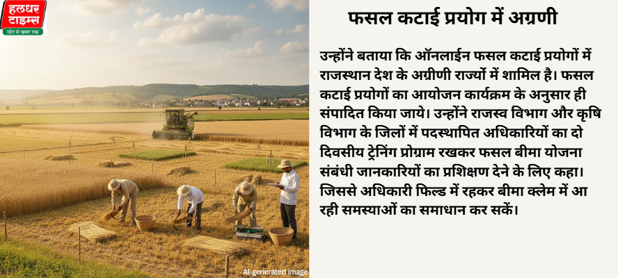 (सभी तस्वीरें- हलधर)जयपुर। कृषि मंत्री डॉ. किरोड़ीलाल मीणा ने प्रधानमंत्री फसल बीमा योजना की समीक्षा बैठक में बीमा कंपनियों को स्पष्ट निर्देश दिए है कि क्लेम सेटलमेंट और पोस्ट हार्वेस्टिंग से जुड़े प्रकरणों का निपटारा करके जल्द से जल्द किसानों को बीमा क्लेम उपलब्ध कराया जाये। साथ ही, शत् प्रतिशत फसल कटाई प्रयोग ऑनलाईन संपादित किये जायें। बैठक के दौरान मीणा ने बताया कि अब तक 6 हजार 206 करोड रुपये का क्लेम वितरित किया जा चुका है। बैठक में आयुक्त कृषि -उद्यानिकी चिन्मयी गोपाल, अतिरिक्त निदेशक कृषि (आदान) गोपाल लाल जाट, बीमा कम्पनी प्रतिनिधी उपस्थित रहे।