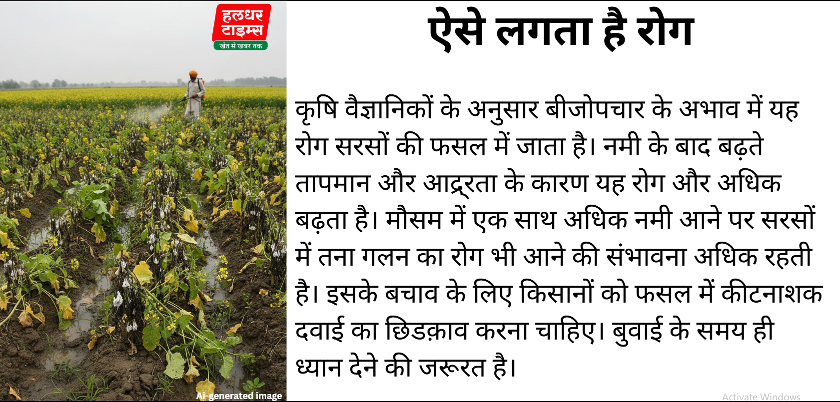 (सभी तस्वीरें- हलधर)जयपुर। आधे राजस्थान में हल्की से तेज मावठ ने रबी फसलों के साथ-साथ किसानों के चेहरे का रंग खिला दिया है। हालांकि, मावठ के बाद से पूरा प्रदेश जाड़े की जकड़ में नजर आ रहा है। वहीं, कोहरे का असर भी आम जनजीवन पर देखनेे को मिल रहा है। कृषि विशेषज्ञों का कहना है पिछले दिनों हुई मावठ की बरसात रबी फसलो में अमृत का काम करेगी। क्योंकि, इस बारिश से रबी फसलों को कोई नुकसान नहीं होगा। गौरतलब है कि इन दिनों सरसों और चना की फसल में चना और फलियां बन रहा है। कृषि वैज्ञानिकों की माने तो मौसमी गतिविधियों को रबी फसलों के अनुकूल है। तापमान में गिरावट और मौसम में नमी से फसल की बढ़वार अच्छी होगी। लेकिन, ठंड़ी हवा फसलों को थोड़ा बहुत नुकसान पहुंचा सकती है। गौरतलब है कि मौसम में आद्र्रता बढऩे से सरसों की फसल में तनागलन और सफेदरोली रोग प्रकोप की संभावनाओं को बल मिला है। मौसम की स्थिति को देखते हुए राष्ट्रीय राई-सरसों अनुसंधान निदेशालय के कृषि वैज्ञानिकों ने किसानों को तनागलन और सफेद रोली रोग नियंत्रण को लेकर सलाह जारी की है। वैज्ञानिकों ने मौसम खुलने के साथ ही नियंत्रण के उपाय अपनाने की बात वैज्ञानिकों ने किसानों से कही है। गौरतलब है कि यह दोनों रोग फसल के उत्पादन के साथ उत्पादकता को गिराने में मुख्य भूमिका निभाते है। निदेशालय के प्रधान वैज्ञानिक डॉ. अशोक कुमार शर्मा ने बताया कि अब सरसों उत्पादक किसान फसल में सिंचाई नहीं करें। क्योंकि, सरसों को पकाव तक पहुुंचाने के लिए पर्याप्त बारिश हो चुकी है। भूमि में ज्यादा नमी से तना गलन रोग को बढ़ावा मिलता है। उन्होंने बताया कि जहां हल्की मृदा है, उन क्षेत्रों के किसान जरूरत होने पर पकाव के समय फसल में सिंचाई कर सकते है। उधर, प्रदेश में रबी फसलों की बुवाई लक्ष्य तक पहुंच चुकी है।
