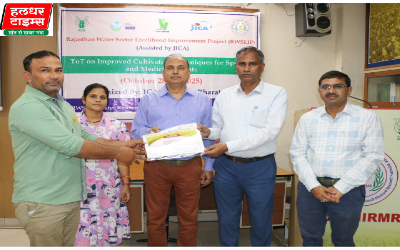 (सभी तस्वीरें- हलधर)भरतपुर। किसान आय बढौत्तरी के लिए फसल विविधीकरण अपनाएं। रबी में मसाला और औषधीय फसलो की खेती करके भी किसान अपनी आय में बढौत्तरी कर सकते है। इन फसलो से टिकाऊ आय संभव है। सरसों अनुसंधान संस्थान के निदेशक डॉ. विजयवीर सिंह ने यह बात कृषि प्रसार कार्यकर्ता प्रशिक्षण के समापन मौके पर कही। उन्होने कहा कि वर्तमान में खेती को लाभकारी बनाने के लिए ऐसी फसलों का चयन करना चाहिए, जिनकी बाजार में मांग निरंतर बनी रहती है। इससे किसानों को दीर्घकालिक आर्थिक स्थिरता मिल सके। मसालों और औषधीय पौधों का क्षेत्र ऐसा उभरता हुआ क्षेत्र है जो किसानों को न केवल अतिरित्त आय देता है । बल्कि, कृषि क्षेत्र में मूल्य संवर्धन और निर्यात की संभावनाएँ भी बढ़ाता है। प्रशिक्षण समन्वयक डॉ. अशोक कुमार शर्मा ने बताया कि इस प्रशिक्षण का मुख्य उद्देश्य मसालों और औषधीय पौधों की उन्नत उत्पादन तकनीक, पौध-जल -पोषक तत्व प्रबंधन, प्रसंस्करण और विपणन की नवीनतम विधियों से परिचित कराना था। प्रशिक्षण के दौरान अश्वगंधा, तुलसी, स्टीविया, हल्दी, सौंफ , धनिया, जीरा आदि फसलों के बारे में जानकारी दी गई। प्रशिक्षण में भरतपुर, डीग और करौली के कृषि प्रसार कार्यकर्ताओं ने भाग लिया।
