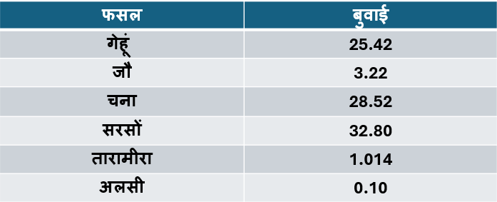 बुवाई क्षेत्र लाख हैक्टयर में।