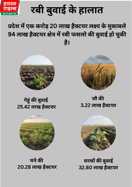 (सभी तस्वीरें- हलधर)जयपुर। रबी फसल की बढ़वार के साथ ही किसान निराई-गुडाई में जुट गए हैं। हालांकि, यूरिया-डीएपी की आपूर्ति समय पर नहीं होने से आदान बिक्री केन्द्रों पर किसानों की कतारे देखने को मिल रही है। उधर, मैदानी जिलों में कोहरे की शुरूआत हो चुकी है। सुबह हल्की धुंध देखी जा रही है। साथ ही, सर्दी भी चमक उठी है। दूसरी ओर प्रदेश में रबी बुवाई लक्ष्य से 78 फीसदी ज्यादा हो चुकी हैं। बुवाई आंकड़ो पर गौर करें तो इस साल एक भी फसल शत प्रतिशत के पार नहीं पहुुंच पाई है। सरसों और चना की बुवाई भी पिछड़ी हुई है। सरसों बुवाई निर्धारित लक्ष्य से 9 फीसदी कम हुई है। वहीं, चना की बुवाई भी लक्ष्य से 6 फीसदी पीछे चल रही है। गेहूं की बुवाई लक्ष्य से 71 फीसदी हो चुकी है। जबकि, जौ की बुवाई लक्ष्य से 85 फीसदी हुई है। कृषि जानकारों का कहना है कि अक्टूबर में बारिश के चलते किसान समय पर फसलों की बुवाई नहीं कर पाएं। इसका प्रभाव अब बुवाई लक्ष्य पर देखने को मिल रहा है।