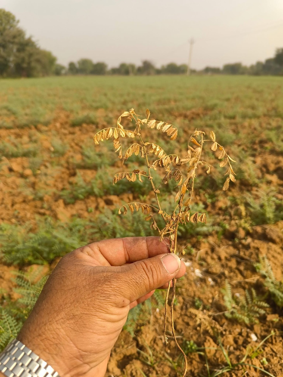 चने की फसल में उखटा और जडग़लन रोग का प्रकोप देखने को मिला है। चना फसल को जडग़लन ओर उखटा रोग से बचाने के लिए किसान 500 ग्राम कार्बेण्डाजिम 50 डब्ल्यूपी को 5-6 किग्रा रेत मिलाकर सिंचाई से पूर्व प्रति बीघा की दर से पौधे के जड़ क्षेत्र में भुरकाव करें।