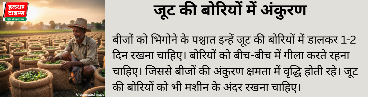हाइड्रोपोनिक्स मशीन में जौ चारा फ सल के लिए बीज 30 किलो औरा मक्का के लिये 50 किलो की दर से काम में लिया जाता है। बीजों की निर्धारित मात्रा (जौ 750 ग्राम, मक्का 1.25 ग्राम प्रति टे्र) लेकर उन्हें साफ पानी में धोना चाहिए। जिससे बीजों पर चिपकी मिट्टी, फंगस, कीटों के साथ ही खराब और क्षतिग्रस्त बीज भी अलग हो जाते है। बीजों को पानी से भिगोए रखने के साथ-साथ जैविक कीटनाशक, फफूंद-नाशक और वृद्धि कारक दवा का प्रयोग लाभकारी रहता है। जौ के बीज 10-12 घंटे और मक्का बीज को 18-20 घंटे पानी में भिगोये रखना चाहिए। इन्हें मशीन में नियंत्रित तापमान पर रखा जाता है।