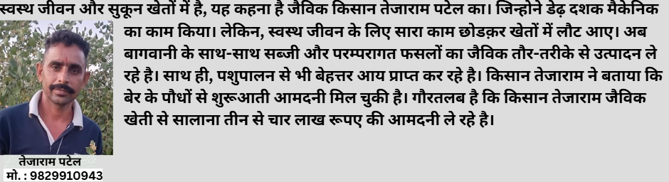 जैविक खेती से किसान तेजाराम ने बदली जिंदगी और कमाई बढ़ाई