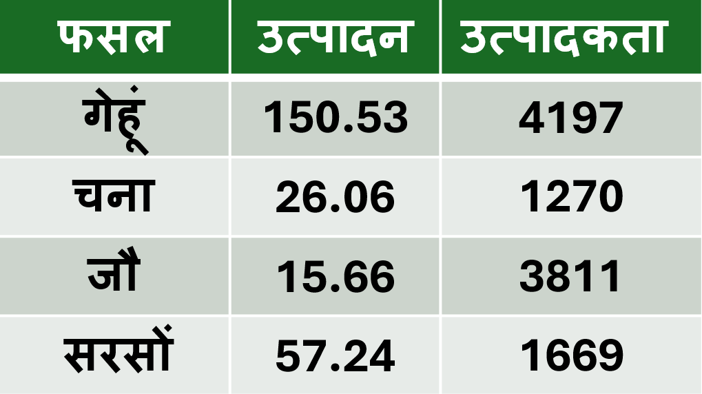 गेहू-जौ-चना बुवाई रकबा बताता है कि इस बार मौसम के चक्रव्यूह में फंसने से किसान सरसों की समय पर बुवाई नहीं कर पाएं। शायद यही कारण रहा है प्रदेश में गेहूं, जौ और चना फसल का बुवाई क्षेत्र अधिक रहा। वहीं, उत्पादन के साथ-साथ उत्पादकता में भी सुधार देखने को मिला।
